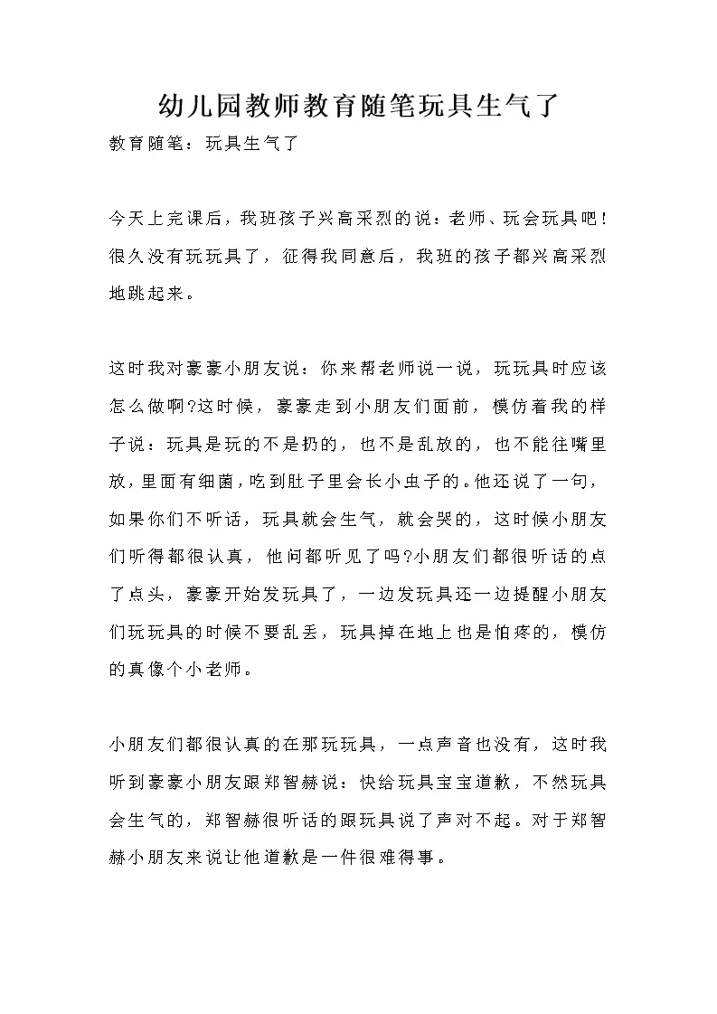 幼儿园教师教育随笔玩具生气了