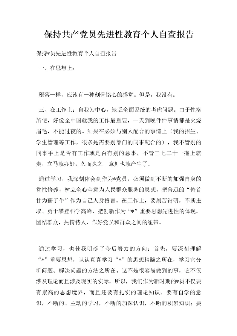 保持共产党员先进性教育个人自查报告