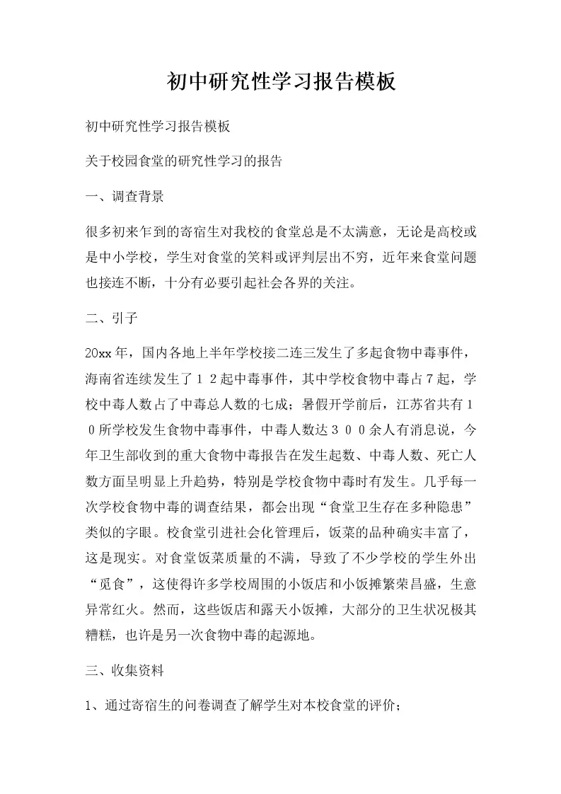 初中研究性学习报告模板