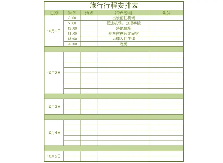 旅行行程安排表