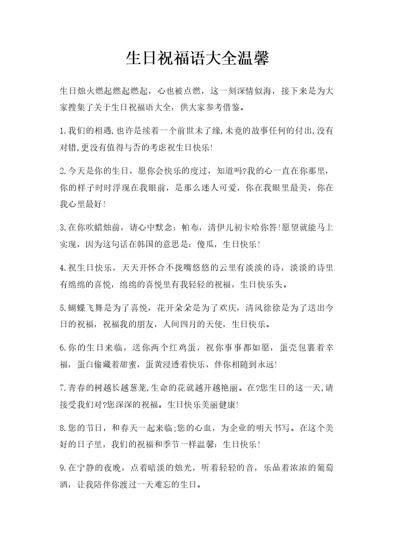 生日祝福语大全温馨