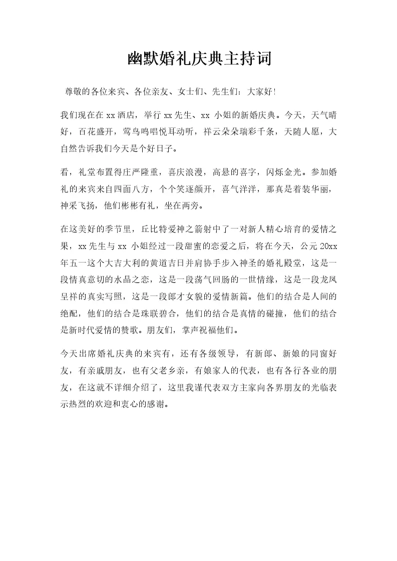 幽默婚礼庆典主持词