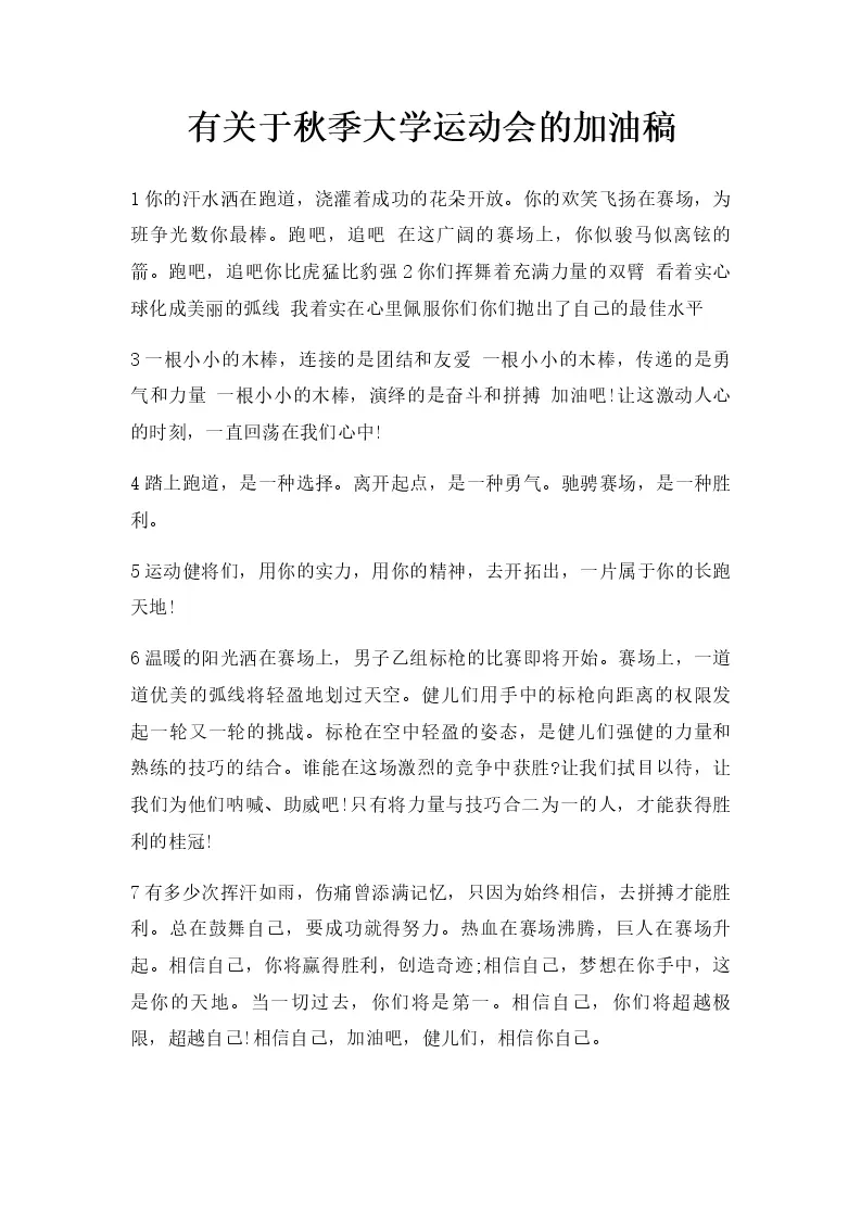 有秋季大学运动会的加油稿